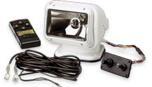 Лампа на 400,000-500,000 кандел, которая дает видимый свет на дистанцию до 2 километров! Мощность светового пучка достигает 10 люкс на дистанции 175 метров. Варианты управления :проводной джойстик, панель управления для монтажа в торпедо, радиопульт RadioRay, панель плюс радиопульт. Угол поворота: 370 градусов по горизонтали и 120 градусов по вертикали. Корпус жаропрочный, всепогодный. Лампа Philips H9 bulb with 12 Volts, 65 Watts, 400,000 свечей. 270 часов постоянного света .Отражатель - параболический (компьютерный дизайн). Радио управление до 30 метров.