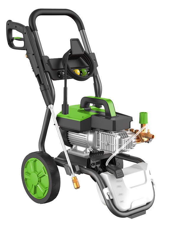 Система автоматического отключения при отсутствии воды. Металлическая помпа и соединители. Триосевой поршневой насос. Поршни из закалённой нержавейки. Двигатель с алюминиевым корпусом. Функция самовсасывания. Профессиональный пистолет с системой блокировки.