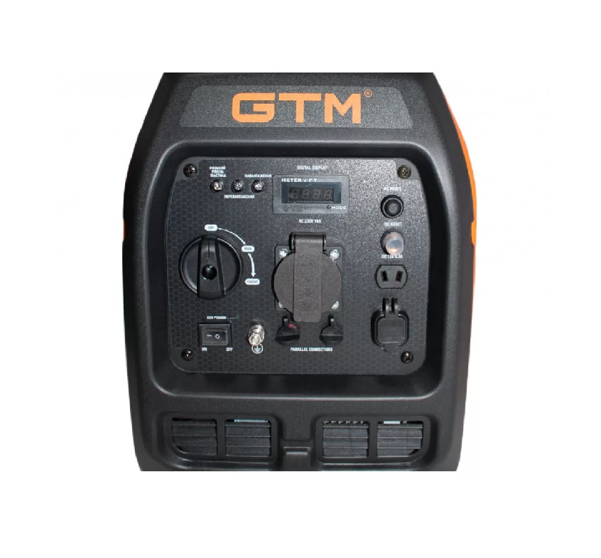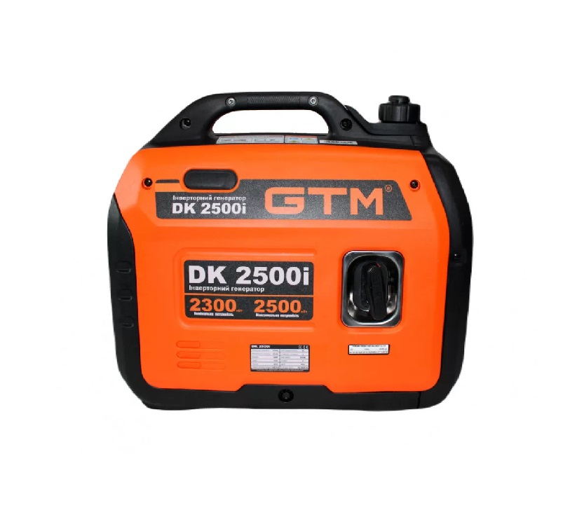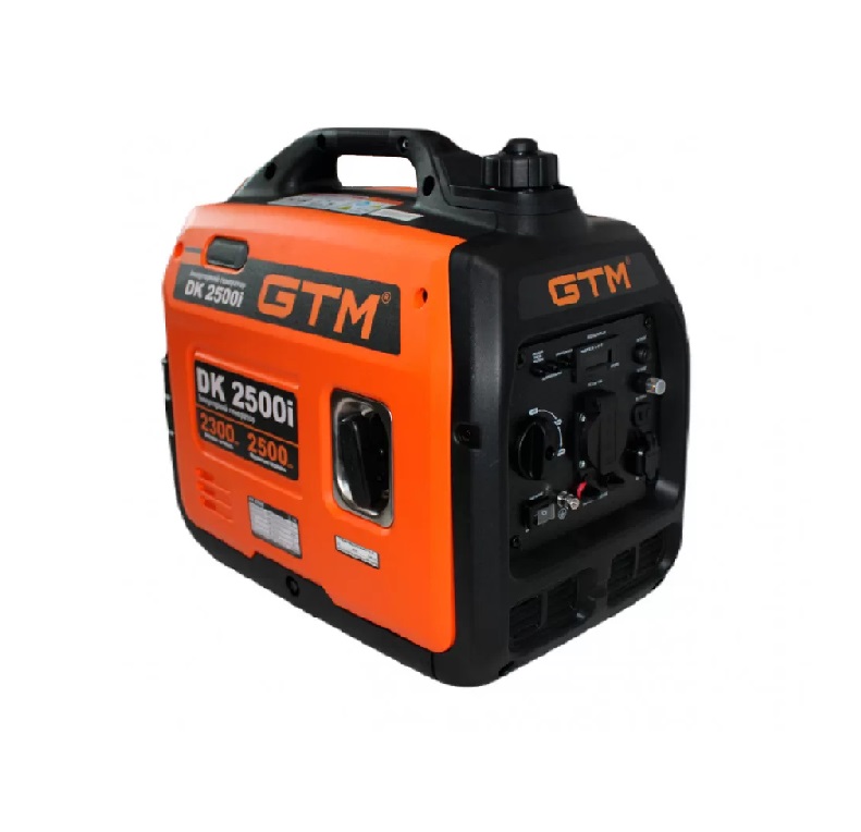 Инверторный бензиновый генератор GTM DK2500i – оснащен надежным, устойчивым к работе в экстремальных условиях 4-х тактным двигателем марки DK148F с максимальной мощностью на выходе до 2.5 кВт. Идеальный вариант, чтобы сделать ваш отдых, поход или рыбалку еще ярче и комфортнее. Во время работы полного бака топлива объемом 4 л хватит  до 6 часов при 50% нагрузке. Инверторная технология обеспечивает надежное питание для чувствительных электрических приборов и компьютеров. Защита при низком уровне смазки. Удобная защищенная панель.