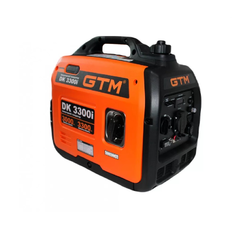 Инверторный бензиновый генератор GTM DK3300i – оснащен надежным, устойчивым к работе в экстремальных условиях 4-х тактным двигателем марки DK164F с максимальной мощностью на выходе до 3.3 кВт. Идеальный вариант, чтобы сделать ваш отдых, поход или рыбалку еще ярче и комфортнее. Во время работы полного бака топлива объемом 4 л хватит до 4 часов при 50% нагрузке. Инверторная технология обеспечивает надежное питание для чувствительных электрических приборов и компьютеров. Защита при низком уровне смазки. Удобная защищенная панель.