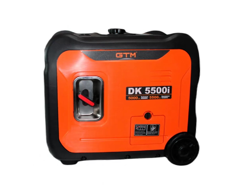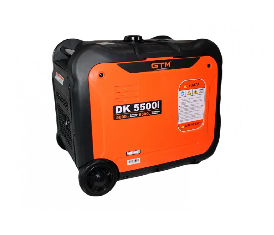 Инверторный бензиновый генератор GTM DK5500i – оснащен надежным, устойчивым к работе в экстремальных условиях 4-х тактным двигателем марки DK180F с максимальной мощностью на выходе до 5.5 кВт. Идеальный вариант, чтобы сделать ваш отдых, поход или рыбалку еще ярче и комфортнее. Во время работы полного бака топлива объемом 13.5 л хватит  до 8.5 часов при 50% нагрузке. Инверторная технология обеспечивает надежное питание для чувствительных электрических приборов и компьютеров. Защита при низком уровне смазки. Удобная защищенная панель.