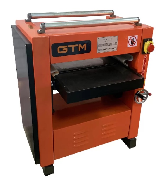 Рейсмусовый станок TP104 предназначается для чистового строгания досок под заданную толщину. Съём древесины осуществляется 4 ножами из закаленной стали, которые закреплены на вращающемся валу с диаметром 77 мм. Станок способен работать с досками шириной до 400 мм и толщиной от 10 мм до 120 мм. Толщина при работе регулируется с помощью рычага с фиксацией и мерной линейки. Скорость подачи заготовки достигает 13,5 м/мин. Для работы с крупногабаритными досками есть возможность подсоединить специальное удлинение.