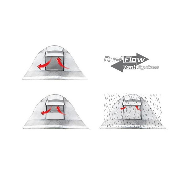 Регулируемая вентиляция Dual Flow Vent System расположена на тенте палатки. Регулировка интенсивности вентиляции осуществляется при помощи оконной шторы.