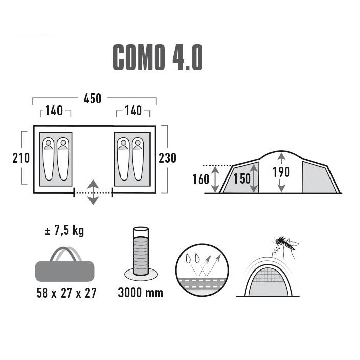 Материал наружного тента: 190T Polyester Alu UV Protect 80, 3000 мм водяного столба