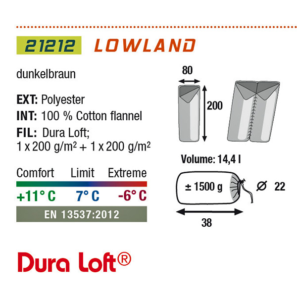 Спальный мешок High Peak Pak Scout Comfort соответствует Европейскому стандарту EN 13357: 2012. (данный стандарт нормирует требования к спальным мешкам и подтверждает соответствие указанных температурных режимов на ярлыках изделия). Комфортный для сна спальный мешок из легкого полиэстерового материала и натурального 100% хлопка в паре с фирменным наполнителем Dura Loft ®, создадут вам отличные условия для отдыха на природе или даче. Изделия из 100% - го хлопка считаются идеальными для контакта с кожей человека. Расстегнув спальник полностью, его можно использовать как полноценное одеяло. Используется для походов, кемпинга, автотуризма.