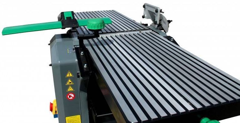 Настольный строгальный (фуговально рейсмусовый) станок с шириной строгания 305 мм, автоподачей заготовки и двумя строгальными ножами. Стальной вал подачи с зубчатой нарезкой и обрезиненный выходной вал.