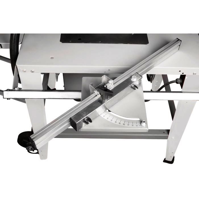 Подвижная каретка перемещается на шариковых подшипниках и имеет угловой упор (от -45° до +45°) для реза скосов.