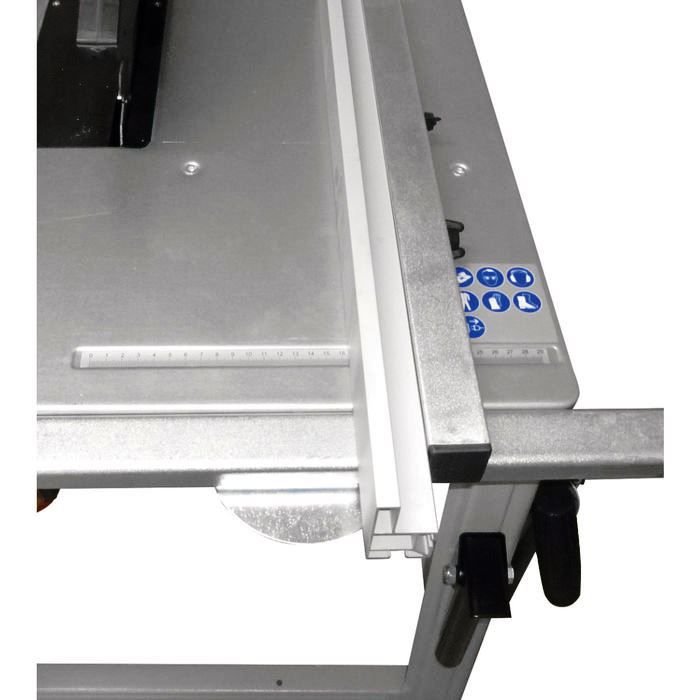 Параллельный упор оснащен эксцентриковым зажимом и позволяет не только распускать доски, но и делать угловые резы, снимать фаски, обрезать кромки и т.п.