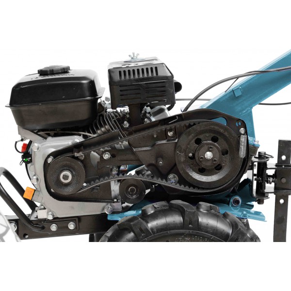 Цепная трансмиссия с передачей до 95% крутящего момента. Несущественные потери при переходе мощности на оснастку. Цепь и ремень надежно защищены от попадания мусора, обрыва под воздействием внешних факторов.