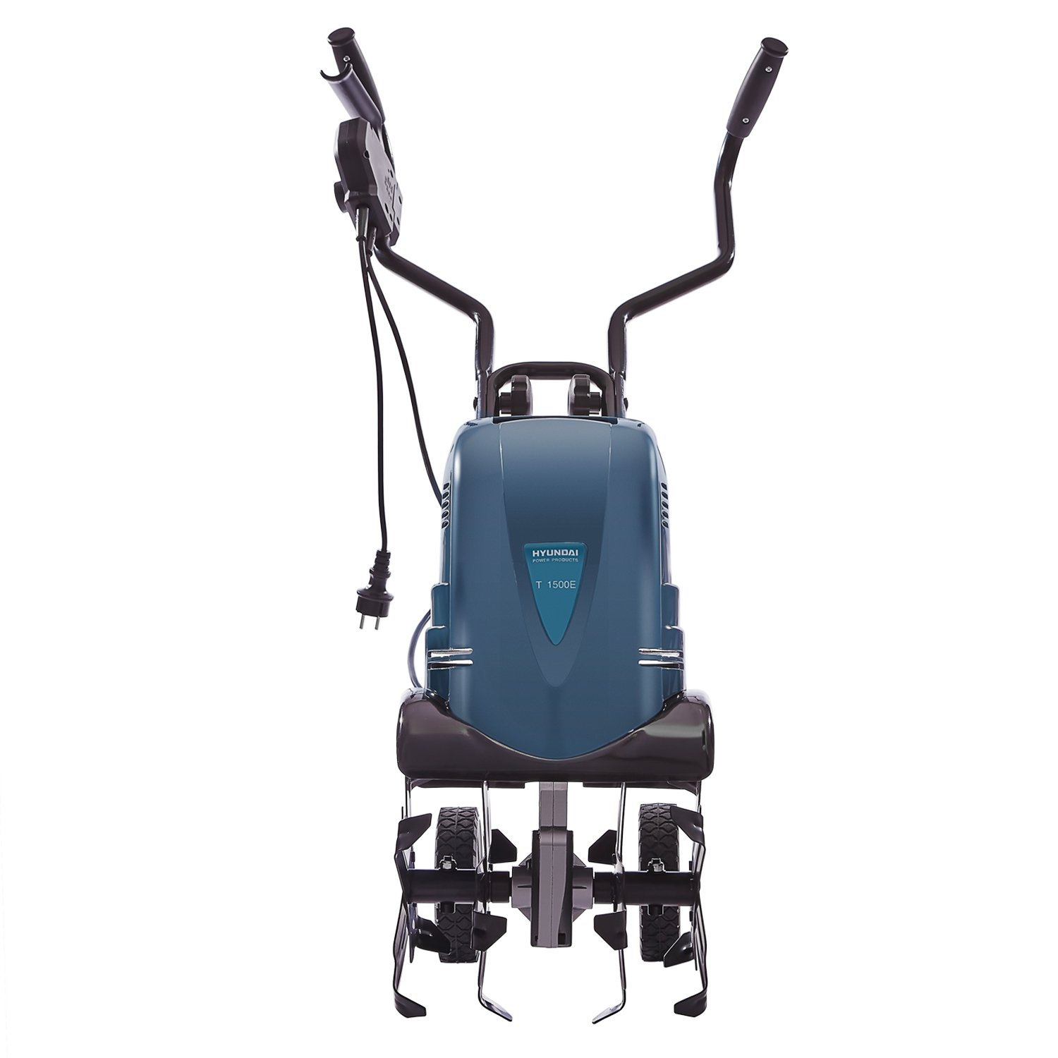 Электрический культиватор Hyundai T 1500 Е – легкий и практичный, но обладающий отличной мощностью и продуктивностью. Любители чистых экологических продуктов будут ликовать, так как культиватор питается от электросети. Данная модель может запросто справиться с работой в теплице или на огороде. Вот только перед приобретением проследите, что бы электричество не скакало. Все остальное для T 1500 Е не важно. Маленький вес не мешает продуктивно работать с землей, а наоборот дает возможность маневрировать как угодно. Запуск производится рычагом, который имеет защиту от случайного старта. Это очень приятная мелочь от Хюндай, доказывающая, что компания на самом деле беспокоится о своих клиентах. Ценовая категория средняя, и позволить себе электрокультиватор смогут многие. Все детали можно найти в любом магазине и по низкой стоимости. Гарантия дается годовая. Но владельцы редко обращаются к сервисным центрам, ведь потребность бывает очень редкой. Эта техника не создавалась для поломок, она предназначалась только для работы. Двигатель расположен очень удобно и вес в целом сбалансирован. Фрезы отличаются своей прочностью и долговечностью. Рукоятки очень удобные, прорезиненные. Плюс Hyundai T 1500 Е в том, что нету никаких шумов, вибраций, выхлопов и специфического запаха бензина. Хранение также не займет особых проблем. Максимум, что Вам нужно, это протереть пыль после «зимней спячки» Вашего культиватора. Для этой модели не страшны тяжелые грунты, ведь фрезы специальной загнутой формы.