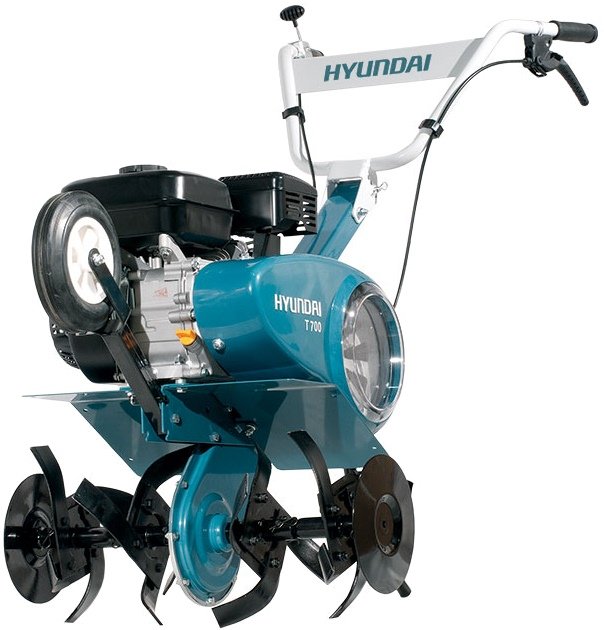 Основное назначение культиватора HYUNDAI T 700 - взрыхление и обработка почвы, однако он может выполнять и такие функции, как прополка сорняков и обработка земли между посаженными кустарниками и деревьями. Культиватор оснащен коваными фрезами специальной - саблевидной формы. Саблевидные фрезы идеально подходят для любого вида работ, в том числе, для обработки глинистых и целинных почв. Фрезы легко снимаются с рабочего вала, таким образом можно регулировать ширину обработки почвы. Система OHV с верхним расположением клапанов значительно улучшает мощность двигателя, снижает расход топлива и уровень шума! Один из самых необходимых предметов сельскохозяйственной техники применяется как на огромных угодьях и картофельных полях, так и на небольших участках.