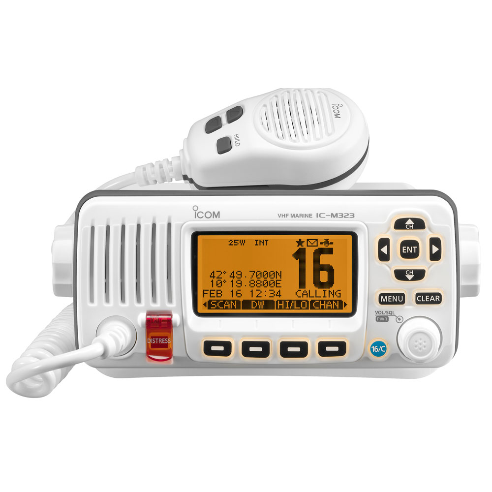Морская бортовая радиостанция Icom IC-M323 со встроенной системой ЦИВ класса D, в водонепроницаемом корпусе. Новый интуитивно понятный интерфейс пользователя.