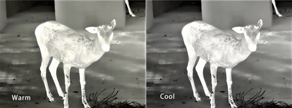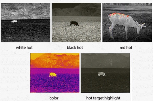 Пять цветовых палитр (white hot, black hot, red hot, pseudo color, target highlight);