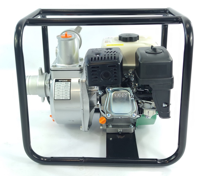 Производительность м3/ч (л/мин): 60(1000) Диаметр всасывающего и выходного отверстия (мм): 80 Высота подъема (м): 30 Глубина всасывания (м): 8 Модель двигателя: Е 210 Тип двигателя: 4-х тактный Мощность двигателя (л.с.): 7,5 Объем цилиндра (см3): 210 Объем топливного бака (л): 3,6 Топливо: бензин Объем масла в картере (л): 0,6 Рекомендуемое масло: SAE 10W30 Вес (кг): 28