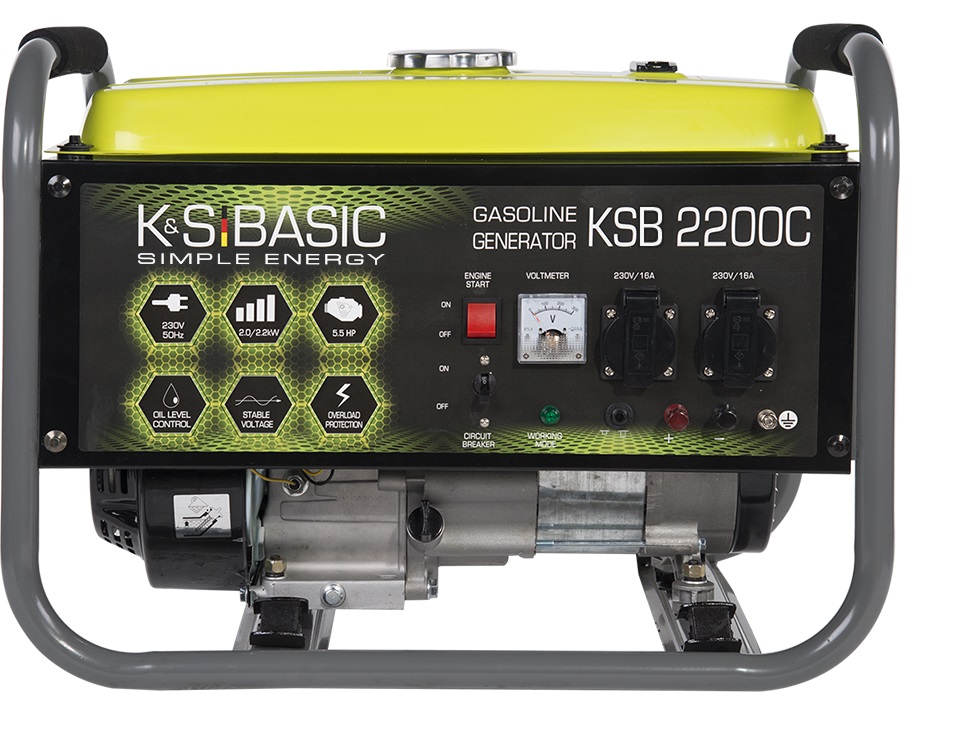Лінійка бензинових «K&S Basic» генераторів створена на базі фірмових двигунів KSB, що відрізняються відносно тихою роботою та надійністю завдяки верхньому розташуванню впускних та випускних клапанів. Двигуни відповідають усім світовим та європейським стандартам якості, економічності, екологічності (зокрема рівень шкідливих викидів та рівень шуму). Кожний двигун та кожний генератор мають свої індивідуальні серійні номери, що дозволяє нам контролювати якість виробництва та сервісного обслуговування. Для зручності транспортування використовуються еластичні рукоятки, які відмінно доповнюють дизайн і кінцевий вид товару. Простий в управлінні агрегат не потребує особливих навичок, доступний для використання всіма категоріями користувачів. Зручний ручний запуск дозволяє швидко завести двигун, не докладаючи значних зусиль.