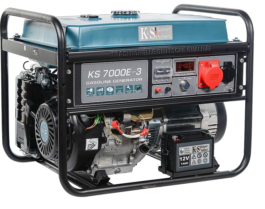 Для торгової марки «Könner & Söhnen» спеціально були створені двигуни серії KS, що пройшли багатогодинні та багаторівневі тести. Фірмові двигуни KS надійні, зносостійкі та економічні. Надійний двигун Könner & Söhnen відповідає всім європейським стандартам якості, в тому числі сучасному екологічному стандарту EURO V. Двигуни відповідають усім світовим та європейським стандартам якості, економічності, екологічності (зокрема рівень шкідливих викидів та рівень шуму). Кожний двигун та кожний генератор мають свої індивідуальні серійні номери, що дозволяє нам контролювати якість виробництва та сервісного обслуговування. Двигуни Könner & Söhnen вирізняються легким стартом та пониженою вібрацією. Лінійка бензинових генераторів KS 7000 оснащена надійним 1-циліндровим двигуном потужністю 13 к.с.