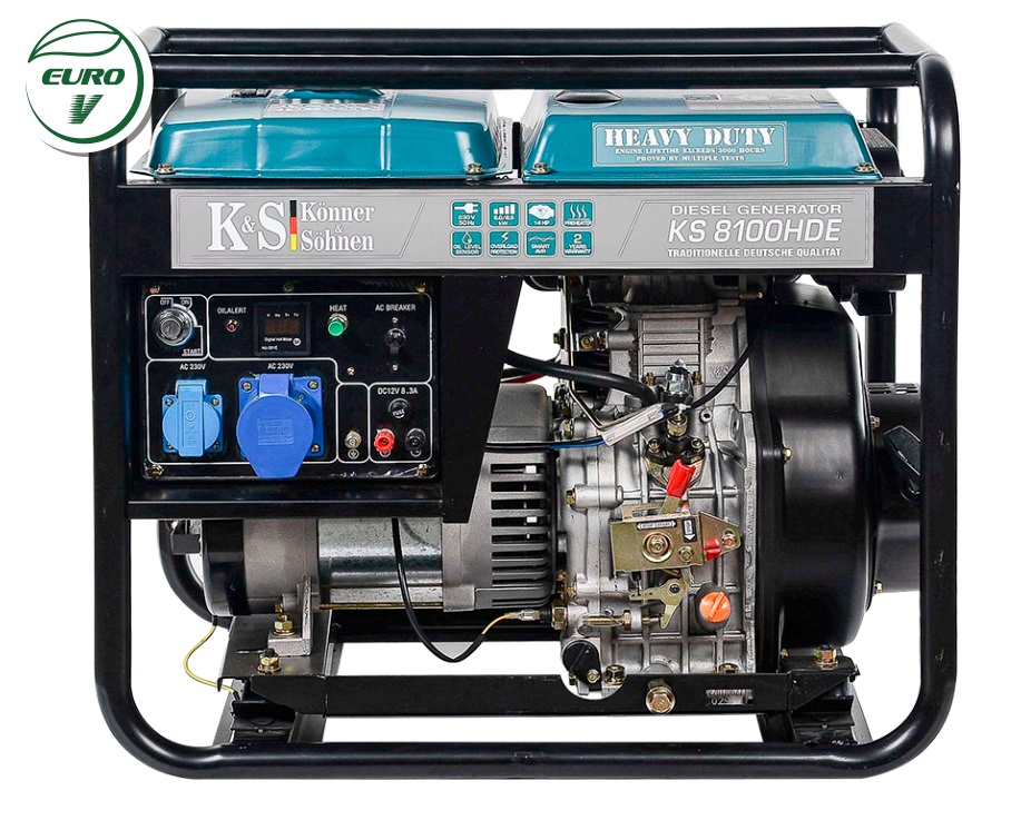 Зручна ергономічна панель дозволяє з легкістю керувати всім агрегатом і не потребує додаткових навичок. Сучасний багатофункціональний LED-дисплей відображує частоту, вольтаж, та кількість відпрацьованих генератором годин. Інформація на дисплеї допомагає легко контролювати якість напруги, що видається пристроєм. Дизельні генератори серії «HEAVY DUTY» оснащені функцією передстартового підігріву, яка дозволяє запускати генератор в зимовий час без зайвих зусиль. Генератори «Könner & Söhnen» серії «HEAVY DUTY» оснащені інтелектуальною системою стабілізації напруги AVR. Вона дозволяє утримувати вихідну напругу генератора на постійній величині 230В і захищає від небажаного короткого замикання та перенавантаження.