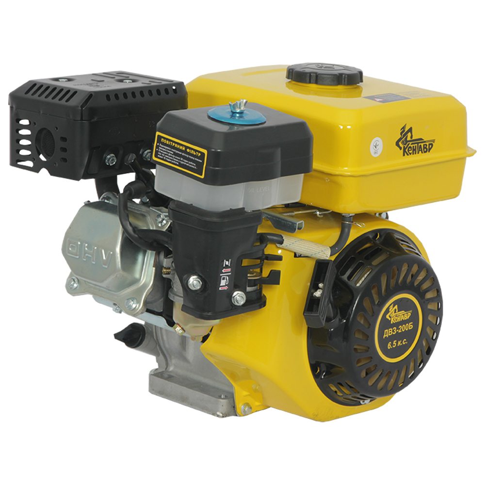 Двигатель внутреннего сгорания Кентавр ДВЗ-200Б – модульный универсальный бензиновый одноцилиндровый четырехтактный воздушного охлаждения двигатель общего назначения. Двигатель внутреннего сгорания Кентавр ДВЗ-200Б мощностью 6,5 л.с. и рабочим объемом 196 куб. см, может использоваться в составе миниэлектростанций, в сельскохозяйственной технике – мотоблоках, мотокультиваторах, косилках, самоходных шасси, ирригационных и оросительных системах, в строительном оборудовании – виброплитах, ударных трамбовках, бетономешалках, компрессорах, насосах и помпах. Что примечательно, крепление двигателя – универсальное. Фиксация шкива или зубчатого колеса на выходной части вала двигателя Кентавр ДВЗ-200Б для передачи крутящего момента на различные вспомогательные агрегаты, системы и узлы осуществляется при помощи шпоночного соединения. Для запуска ДВЗ используется ручной стартер. Чтобы избежать повреждения двигателя при отсутствии масла в картере или недостаточном его количестве, предусмотрена аварийная система. Таким образом, при низком уровне масла в картере система защиты остановит его работу, предотвращая поломку. Для облегчения доступа с разных сторон картера двигателя предусмотрены две горловины для заливки масла с пробками-щупами. Благодаря компактным габаритным размерам и небольшому весу двигатель Кентавр ДВС-200Б можно использовать в качестве силового агрегата транспортных средств, в том числе и водного транспорта – лодок, катеров и небольших яхт.