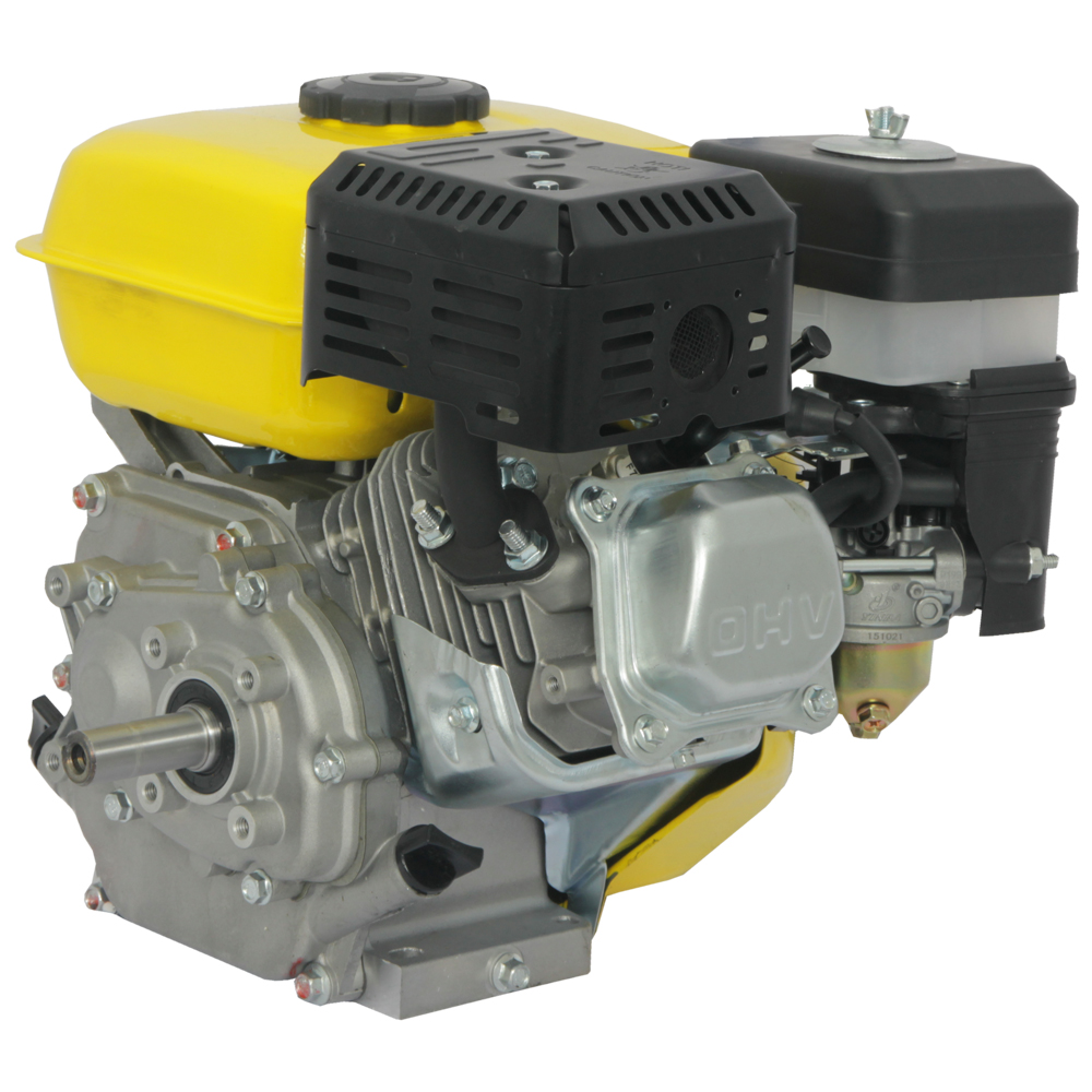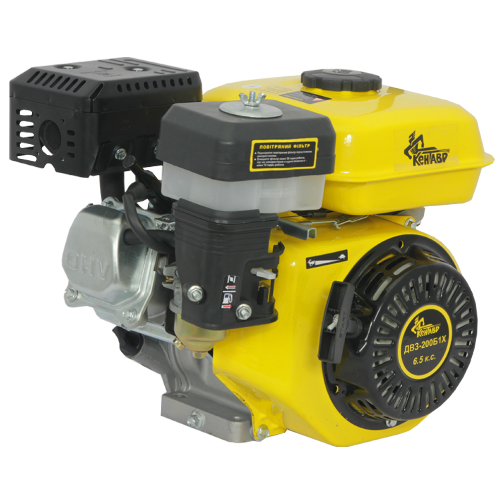 Двигатель внутреннего сгорания Кентавр ДВЗ-200Б1Х – модульный универсальный бензиновый одноцилиндровый четырехтактный воздушного охлаждения двигатель общего назначения. ДВС Кентавр ДВЗ-200Б1Х предназначен для использования в качестве автономного силового агрегата для широкого спектра оборудования, техники, станков и транспортных механизмов. Что примечательно, крепление двигателя – универсальное. Основными достоинствами двигателя Кентавр ДВЗ-200Б1Х являются надежность и неприхотливость в работе, низкие уровни вибрации и шума, высокие удельная мощность и КПД, а также простота в эксплуатации и обслуживании. Отличительной особенностью данной модели является наличие редуктора, который понижает скорость вращения выходного вала до 1800 об/мин. Двигатель внутреннего сгорания Кентавр ДВЗ-200Б1Х, мощность которого составляет 6,5 л.с., мощностью 6,5 л.с. и рабочим объемом 196 куб. см, станет незаменим в тех случаях, когда необходима отменная тяга на низких оборотах. Для запуска бензинового двигателя используется ручной стартер. Крепление шкива или зубчатого колеса на выходной части вала модели Кентавр ДВЗ-200Б1Х для передачи крутящего момента на различные вспомогательные агрегаты, системы и узлы осуществляется при помощи шпоночного соединения. Чтобы избежать повреждения двигателя при отсутствии масла в картере или недостаточном его количестве, предусмотрена аварийная система. Таким образом, при низком уровне масла в картере система защиты остановит его работу, предотвращая поломку. Для облегчения доступа с разных сторон картера двигателя предусмотрены две горловины для заливки масла с пробками-щупами. Бензиновый двигатель Кентавр ДВЗ-200Б1Х имеет небольшой вес и габариты, что очень важно при эксплуатации, транспортировке и хранении.
