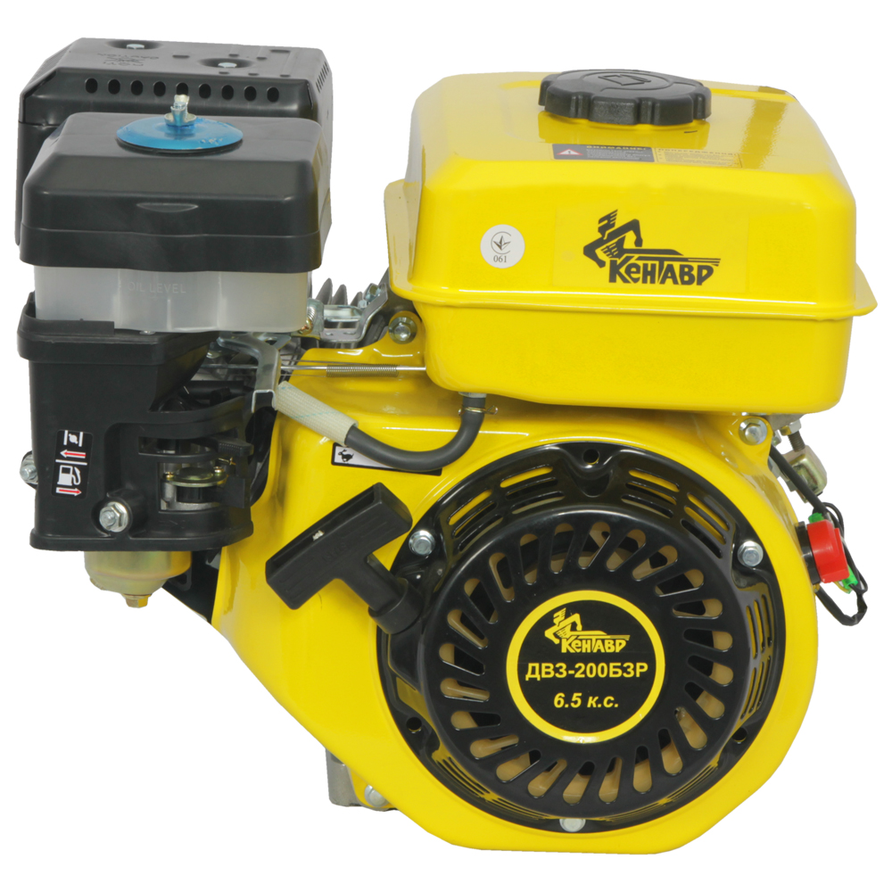 Двигатель внутреннего сгорания Кентавр ДВЗ-200БЗР – модульный универсальный бензиновый одноцилиндровый четырехтактный воздушного охлаждения двигатель общего назначения. Двигатель внутреннего сгорания Кентавр ДВЗ-200БЗР мощностью 6,5 л.с. и рабочим объемом 196 куб. см, может использоваться в составе миниэлектростанций, в сельскохозяйственной технике – мотоблоках, мотокультиваторах, косилках, самоходных шасси, ирригационных и оросительных системах, в строительном оборудовании – виброплитах, ударных трамбовках, бетономешалках, компрессорах, насосах и помпах. Что примечательно, крепление двигателя – универсальное. Отличительной особенностью модели Кентавр ДВЗ-200БЗР является наличие шкива на 3 ручья. Фиксация шкива на выходной части вала двигателя для передачи крутящего момента на различные вспомогательные агрегаты, системы и узлы осуществляется при помощи шпоночного соединения. Для запуска бензинового ДВС используется ручной стартер. Чтобы избежать повреждения двигателя при отсутствии масла в картере или недостаточном его количестве, предусмотрена аварийная система. Таким образом, при низком уровне масла в картере система защиты остановит его работу, предотвращая поломку. Для облегчения доступа с разных сторон картера двигателя предусмотрены две горловины для заливки масла с пробками-щупами. Благодаря компактным габаритным размерам и небольшому весу двигатель Кентавр ДВЗ-200БЗР можно использовать в качестве силового агрегата транспортных средств, в том числе и водного транспорта – лодок, катеров и небольших яхт.