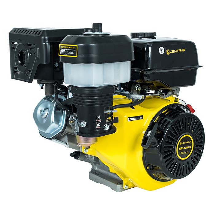 ДВИГАТЕЛЬ ВНУТРЕННЕГО СГОРАНИЯ КЕНТАВР ДВЗ-420Б1X – МОЩНЫЙ МОДУЛЬНЫЙ УНИВЕРСАЛЬНЫЙ БЕНЗИНОВЫЙ одноцилиндровый четырехтактный воздушного охлаждения двигатель общего назначения. Двигатель внутреннего сгорания ДВЗ-420Б1X мощностью 15,0 л.с. И рабочим объемом 420 куб. См, может использоваться в составе миниэлектростанций, в сельскохозяйственной технике – мотоблоках, мотокультиваторах, косилках, самоходных шасси, ирригационных и оросительных системах, в строительном оборудовании – виброплитах, ударных трамбовках, бетономешалках, компрессорах, насосах и помпах. Что примечательно, крепление двигателя – универсальное.