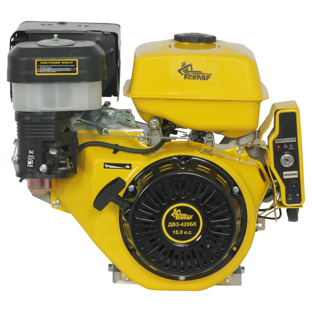 Двигатель внутреннего сгорания Кентавр ДВЗ-420БЕ – мощный, модульный, универсальный, бензиновый, одноцилиндровый, четырехтактный, воздушного охлаждения двигатель общего назначения. Двигатель внутреннего сгорания Кентавр ДВЗ-420БЕ мощностью 15,0 л.с. и рабочим объемом 420 куб. см, может использоваться в составе миниэлектростанций, в сельскохозяйственной технике – мотоблоках, мотокультиваторах, косилках, самоходных шасси, ирригационных и оросительных системах, в строительном оборудовании – виброплитах, ударных трамбовках, бетономешалках, компрессорах, насосах и помпах. что примечательно, крепление двигателя – универсальное.