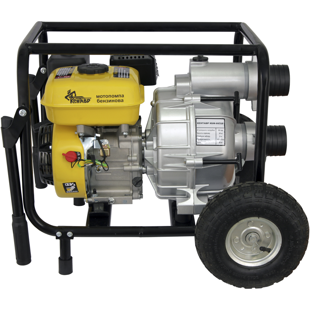 Мотопомпа бензиновая КБМ-80ГКР ТМ «Кентавр» представляет собой мощный бензиновый насос для перекачки чистой и слабозагрязненной воды, а также надежный помощник для откачки грязной, густой воды с разными примесями, такими как водоросли, щебень, мелкий мусор и другими посторонними предметами диаметром до 28 мм. Поможет осушить затопленные территории, объекты, решить задачи с водоснабжением, поливом земельных участков, орошением, забором воды из колодцев, водоемов, бассейнов, наполнение емкостей, используется при тушении очагов пожаров. Мотопомпа КБМ-80ГКР ТМ «Кентавр» состоит из двух основных узлов, закрепленных на прочной металлической раме – мощного 4-тактного одноцилиндрового двигателя внутреннего сгорания объемом 196 см³ (мощность 6,5 л.с.) и центробежного самовсасывающего водяного насоса в алюминиевом корпусе. Такая простота и надежность гарантирует длительный срок службы изделия.