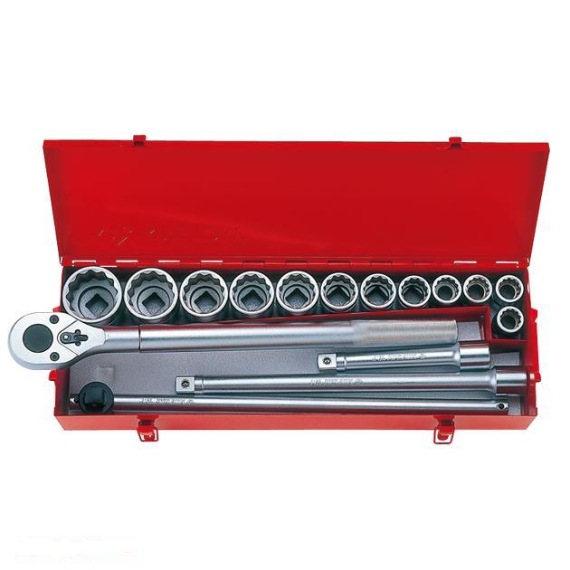 Торцевые головки 12-ти гранные 3/4” - 7/8, 15/16, 1, 1-1/16, 1-1/8, 1-1/4, 1-3/8, 1-1/2, 1-5/8, 1-3/4, 1-7/8, 2 Удлинители 3/4”, длина 8" и 16" Вороток Т-образный, длина 500 мм Трещотка на 24 зуба