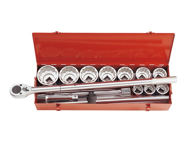 Головки торцевые 1" 12-гранные: 36 , 41 , 46 , 50 , 55 , 60 , 65 , 70 , 75 , 80 мм Трещотка 1" с флажковым переключением 800 мм Удлинители: 200, 400 мм Вороток скользящий: 625 мм