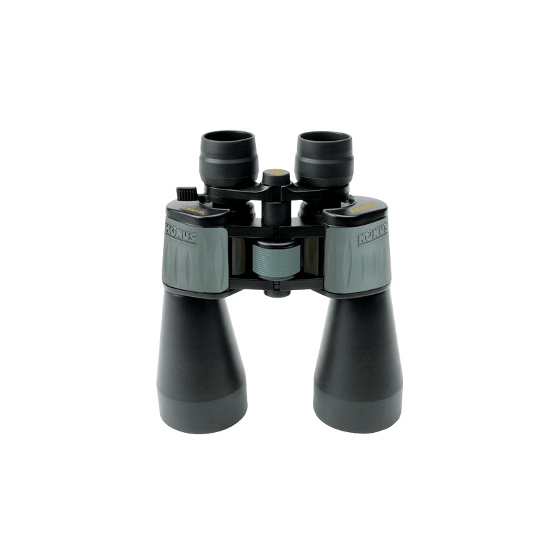 Этот биноль Konus Newzoom 8- 24x50 оснащён зумом, перекрывающим необходимый диапазон увеличений для данной апертуры. Модель оборудована призмами Порро-конструкции, имеет брызгозащищённый дизайн и просветление оптических поверхностей. С применением увеличения свыше 15-20х бинокль становится весьма чувствиетльным в вибрациям рук, поэтому, для наблюдений с большим увеличением, его стоит устанавливать на штатив.