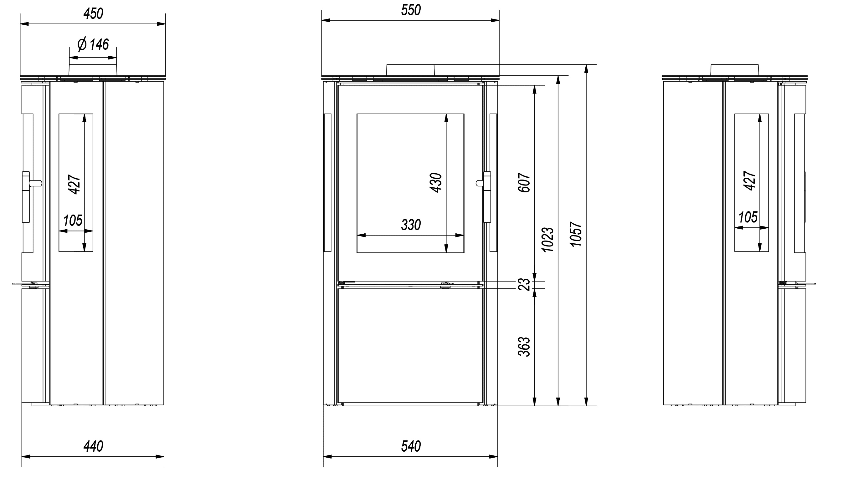 - Піч має систему повітряної завіси. Повітря направляється через місце для виводу попелу(є спеціальний регулятор піддуву повітря).