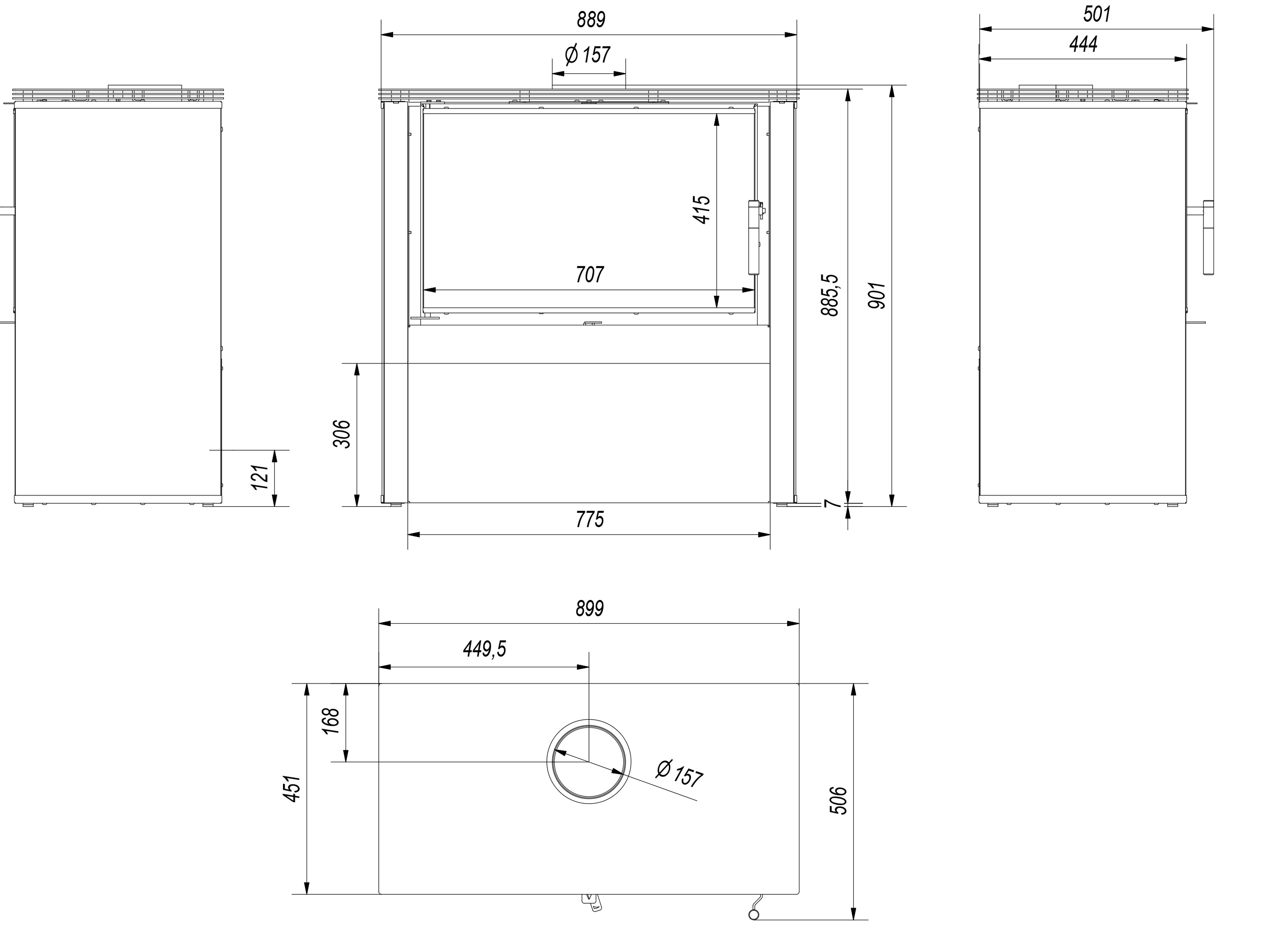7. Можливість установки вихідного отвору димоходу на задній або верхній частині печі (на виході збірки в задній частині печі потрібно додатково придбати плагін верхньої пластини)