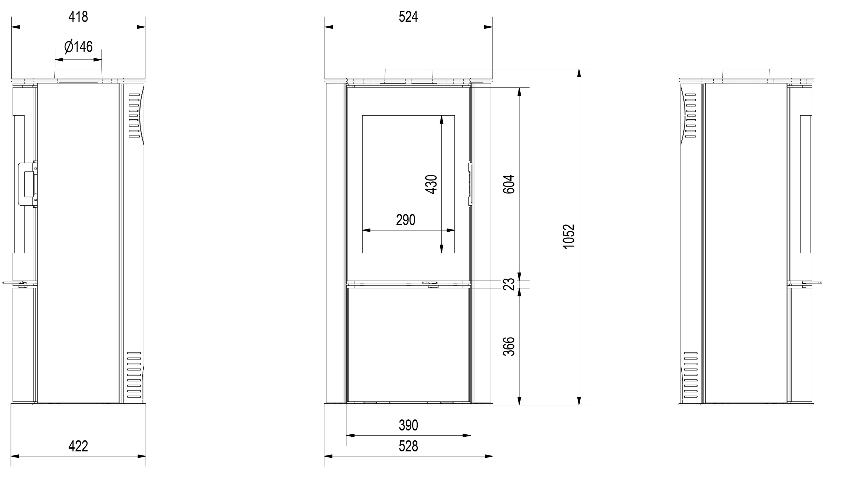 - Піч має систему повітряної завіси. Повітря направляється через місце для виводу попелу(є спеціальний регулятор піддуву повітря).