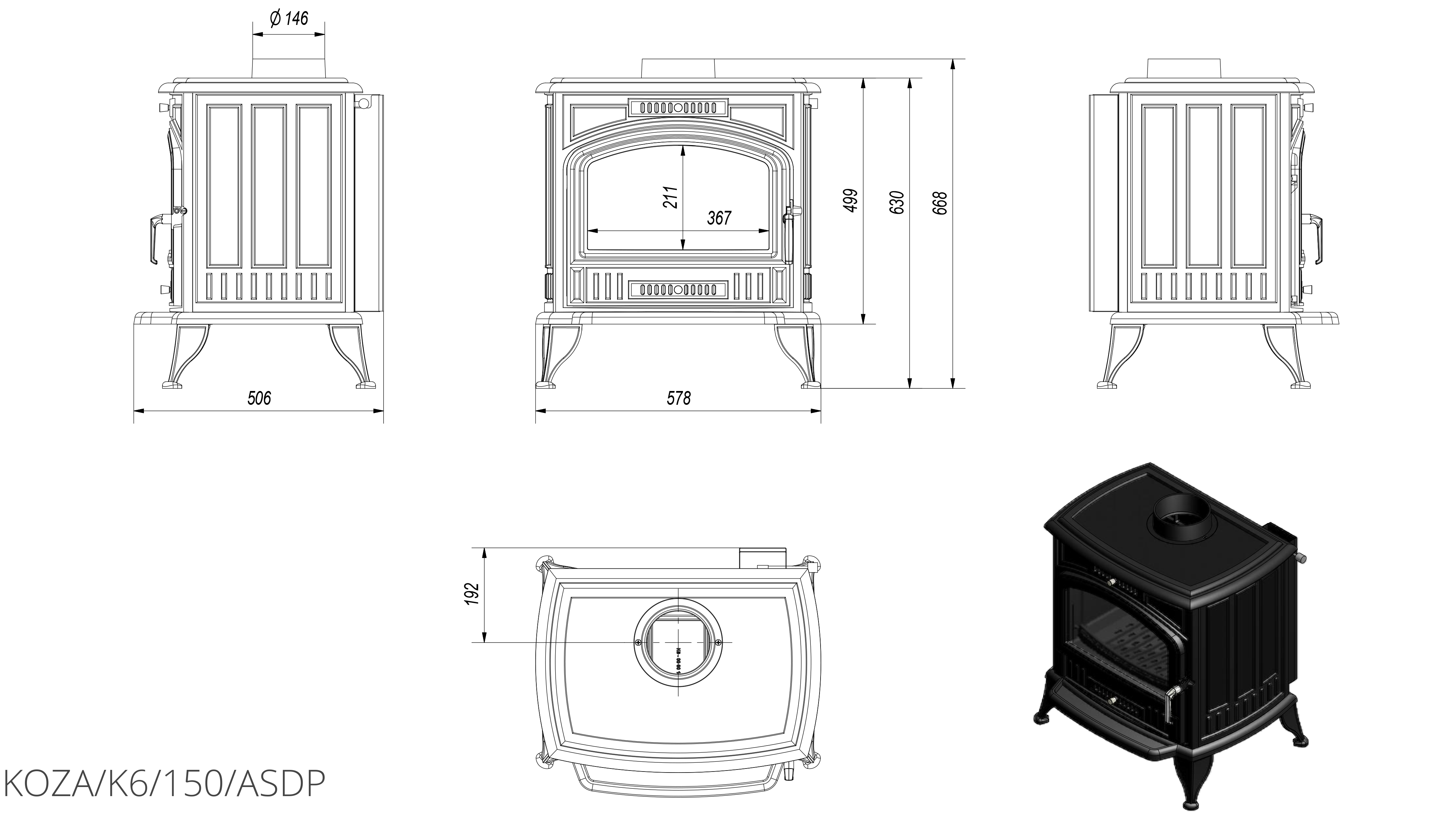 Піч вільностояча KOZA K6 повітряна з автоматичним регулюванням