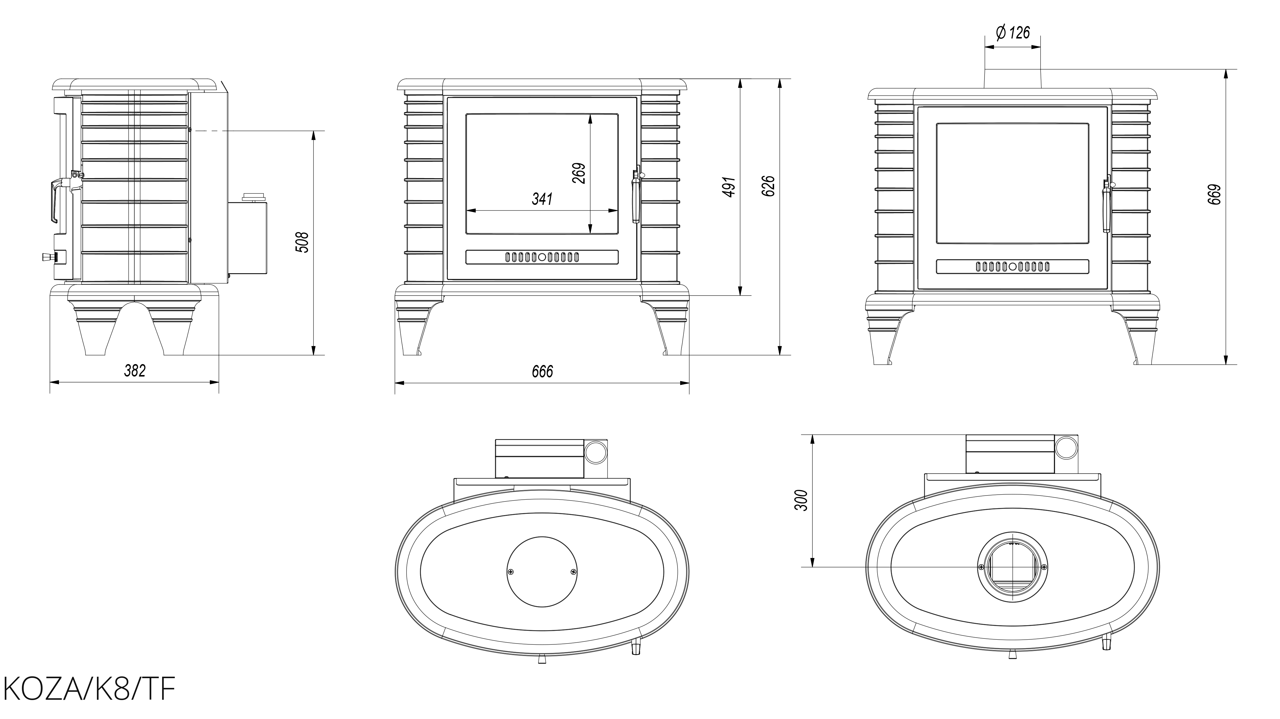 Піч вільностояча KOZA K8 з турбіною TURBOFAN