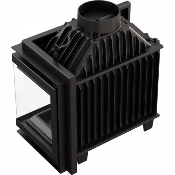 Корпус каміну виконаний з сірого чавуну класу 200, мінімальна товщина стінки 8 мм Щільно розподілені радіатори, збільшують поверхню самого каміну, збільшується площа віддачі тепла. Допалювання часток палива відбувається завдяки дефлектора. Цей процес також підвищує ефективність горіння та гарантує краще використання енергії, крім того, мінімізує викид шкідливих речовин у атмосферу. Подача повітря в топку регулюється за допомогою вбудованого шиберу. Двері монтуються з термостійкої кераміки, котра витримує температуру до 800 С, крім того, скло має сертифікат якості та безпеки. Фронт топки виготовлений із високоякісної сталі, що робить дверцята стабільними та стійкими до напруг, що виникають при дії високих температур.