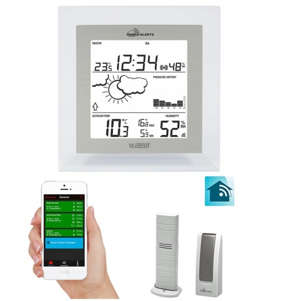 Метеостанция La Crosse MA10009TRA-ALU (+ мобильный шлюз) обладает особенностью, присущей профессиональным метеостанциям. Благодаря встроенной технологии Mobile-Alerts, метеостанция La Crosse MA10009 способна передавать в интернет собранные данные при помощи мобильного шлюза МА 10000 (поставляется в комплекте). Информацию вы можете оперативно просматривать на экране вашего смартфона с помощью предварительно установленного программного обеспечения.