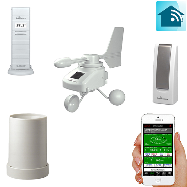 - Передача через интернет на Ваш смартфон данных о температуре и относительной влажности воздуха, скорости и направлении ветра, уровне осадков с помощью технологии Mobile-Alerts