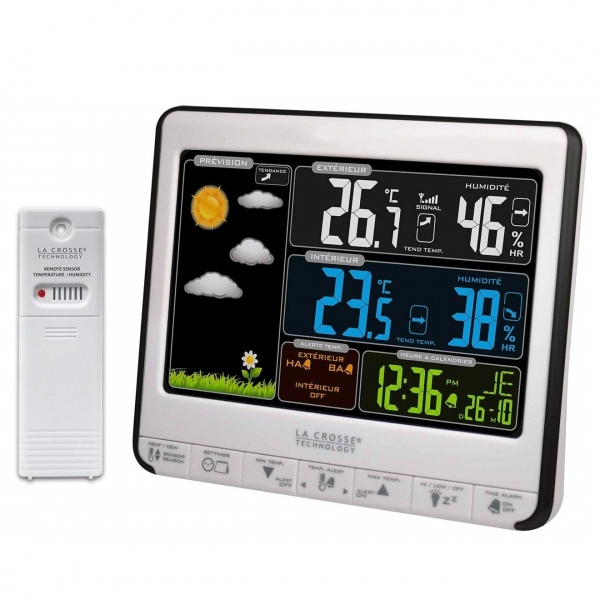 Метеостанция La Crosse WS6826 White/Black - оригинальная многофункциональная погодная станция с цветным ЖК-дисплеем, прогнозом погоды на ближайшие 12 часов, измерением внутренней и внешней температуры и относительной влажности и USB-портом для зарядки мобильных устройств.