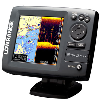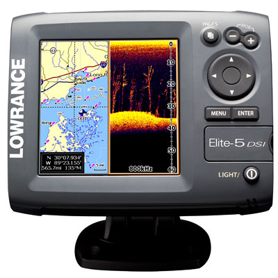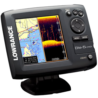 Lowrance Elit 5 DSI имеет цветной экран. Так как это устройство уже снабжено встроенным GPS картплоттером, то цвет имеет уже решающее значение для удобной эксплуатации. Например: на черно-белом картплоттере, линия на экране может в равной степени обозначать дорогу, узкую речушку, ЛЕП, собственный путь, береговую линию, железнодорожные пути, линию глубины (изобату) и.т.д. Понятно, что цветная версия экрана нарисует это все соответствующими для удобного восприятия, цветами. Этот прибор также снабжен новым 16 канальным, высокочувствительным GPS приемником, и способностью читать лучшие карты рек и морей итальянской фирмы