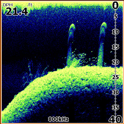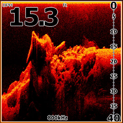 Приблизительно глубже 15 метров в заиленном заливе уже придется переключиться на 455 кГц. Качество ухудшится совсем незначительно, зато сигнал достанет до дна.