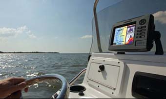 6. Усовершенствованный экран SolarMAX™ PLUS в отличии от предшественника SolarMAX™ имеет чуть более белое свечение экрана и гораздо лучше читается на солнце. Но при этом, как мне показалось, ночью он ослепляет тоже сильнее, притом, что переключение в ночной режим или снижение яркости подсветки помогают не значительно и детали на экране из-за малого уровня подсветки становятся неразличимы. Выход довольно прост – во-первых, установить монитор не прямо перед собой за рулем, а несколько в стороне. Во-вторых, крепление к лодке должно давать возможность развернуть экран, чтобы поток света шел в стороне, но при этом картинка экрана хорошо просматривалась с вашего рулевого места. Все это значительно добавит удобства при движении в темное время суток. Новый экран обеспечивает хорошую читаемость под углом. Для этого очень рекомендую использовать крепление фирмы RАМ. Еще один плюс такой установки, в том, что можно разместить экран ближе к лицу, что даст возможность хорошо видеть мелкие детали изображения и управлять клавишами не наклоняясь вперед.