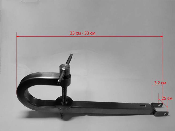 Струбцина(кронштейн) для датчика эхолота . Струбцина крепится к транцу лодки. Струбцина изготовлена из профилированной трубы нержавеющей стали, что придает жесткость конструкции. Длинна струбцины регулируется от 35см до 53см. Отличное качество!!! Устанавливается под лодку.