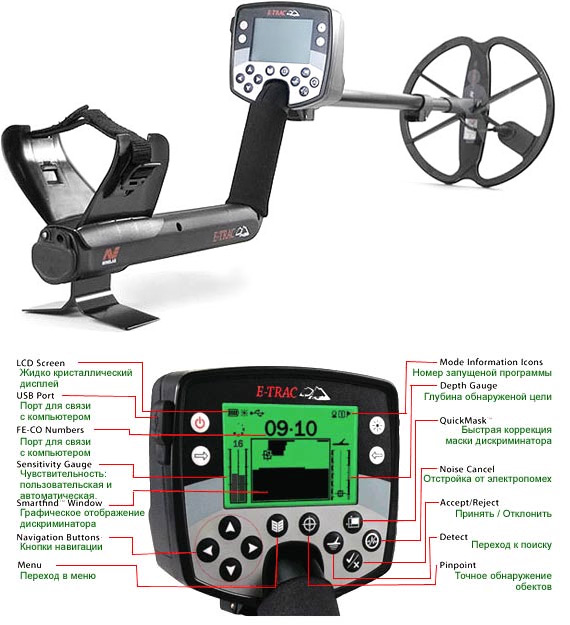 Пожалуй, одна из замечательных особенностей новой модели Minelab E-Trac - полностью русифицированный интерфейс. Вряд ли теперь можно будет услышать мнение, что Explorer сложный в освоении прибор. Инженеры постарались сделать его максимально простым, как говорится - включил и работай. Даже новичок сразу сможет приступить к работе, используя только заводские настройки.