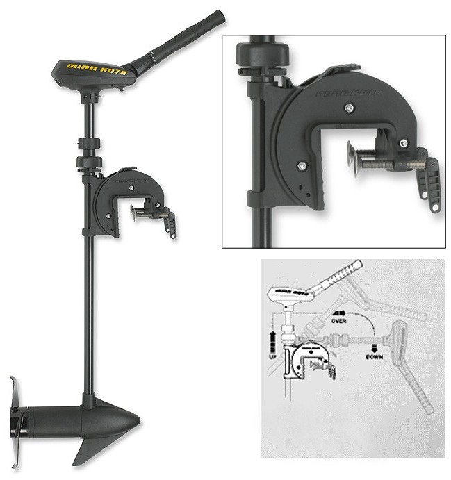 QUICK-LOC - регулировка глубины погружения. С помощью системы QUICK-LOC у TRAХХIS можно легко изменить глубину погружения мотора.Регулировка проста и надежна,мотор прочно удерживается в нужной Вам позиции.