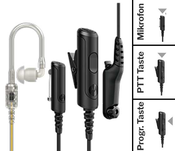PMLN8343A Включает один провод с скрытой ушной трубкой, второй провод с микрофоном и третий провод с отдельной программируемой кнопкой и кнопкой «нажмите и говори» (PTT).