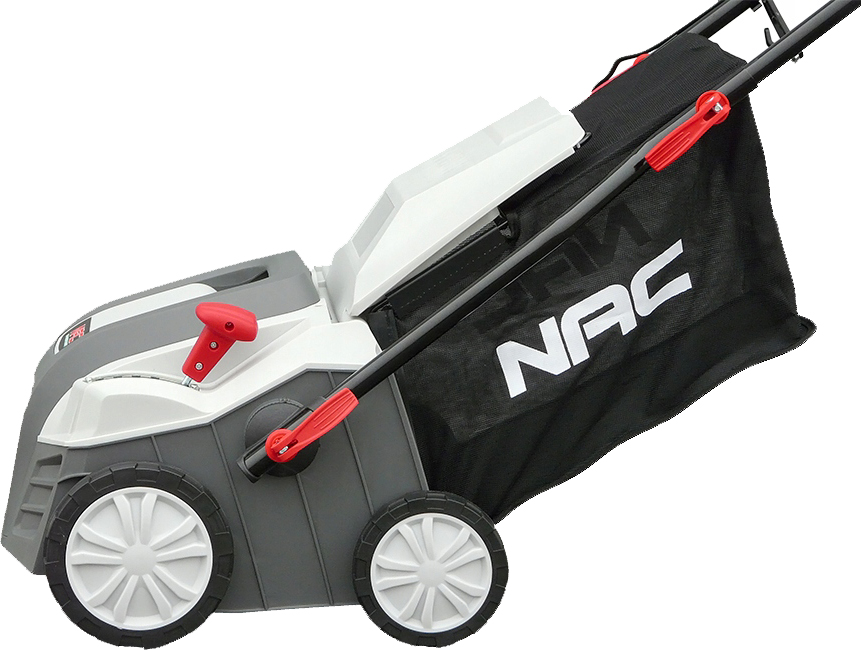 NAC SCE180-W оснащен 50-литровой корзиной для сбора остатков травы во время работы.