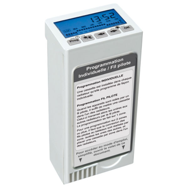 Кассета-программатор Cassete 26N позволяет программировать работу обогревателей на каждый день. Для удобства имеется 7 вариантов встроенных программ и 1 программа, которую может задать сам пользователь. Кассета-программатор переключает на подключенных обогревателях режимы: «Комфортный», «Экономичный» и «Антизамерзание».