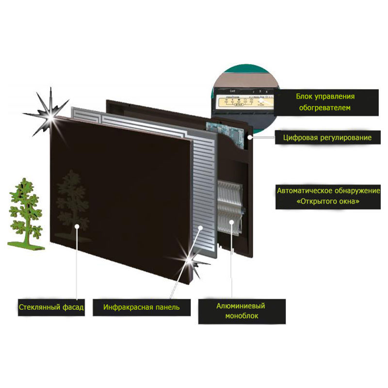 Работой обогревателя Verlys Evolution управляет электронный цифровой термостат ASIC®, с точностью поддержания температуры 0,1ºС. Высокая точность поддержания температуры приводит к экономии электроэнергии, увеличению срока службы прибора и созданию максимального комфорта без скачков температуры, при этом со временем точность электронного термостата не меняется. Особенностью электронного термостата ASIC® является его абсолютно бесшумная работа.