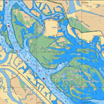Карта содержит оттененные контуры глубин, изобаты глубин